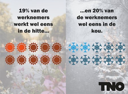 Denken werknemers dat werken in de hitte of de kou mogelijk slecht is voor hun gezondheid? Van de werknemers die in de hitte werken geeft 26 procent aan dat zij dit zien als een risico voor hun gezondheid. Daarbij vindt 44 procent dat (aanvullende) maatregelen tegen de hitte nodig zijn.